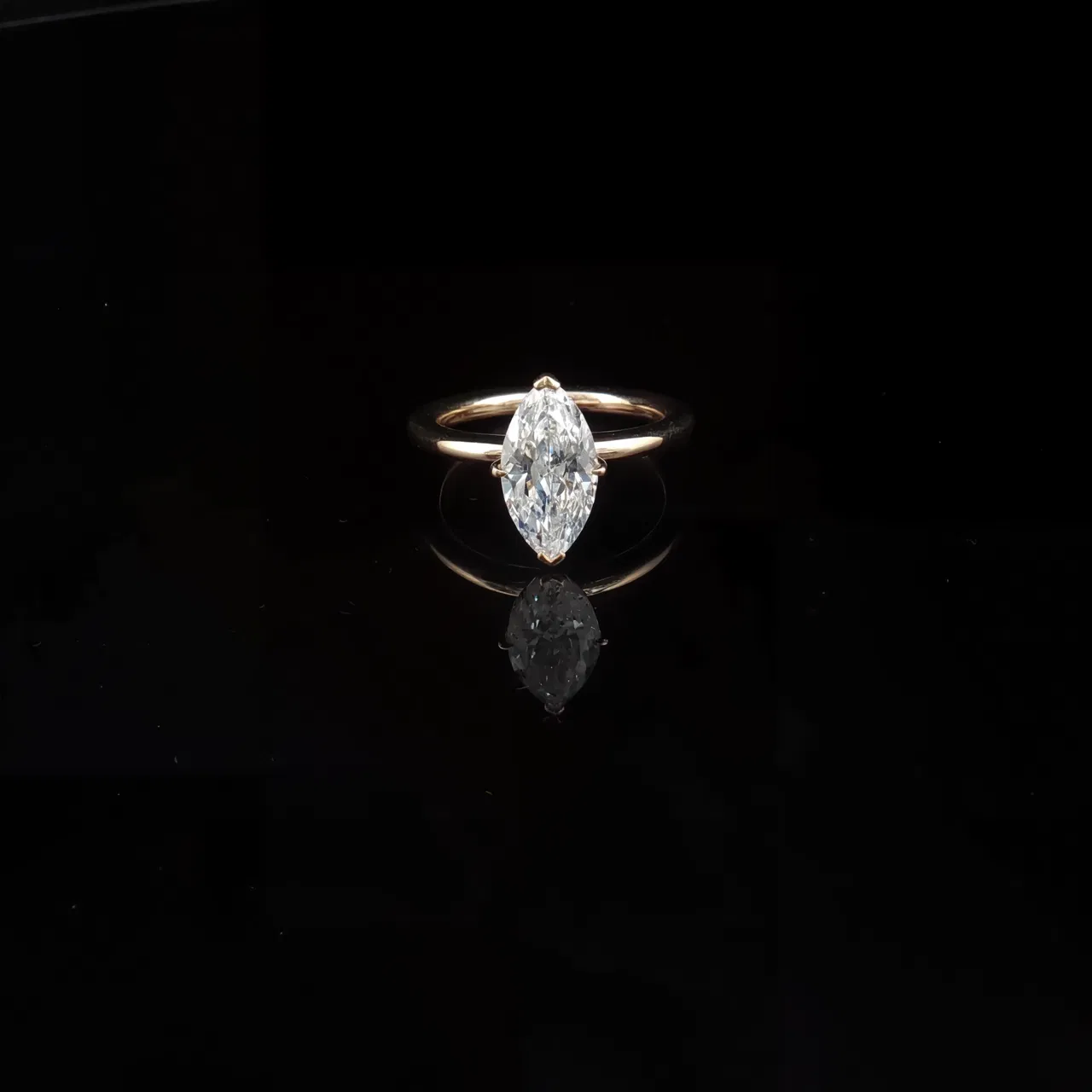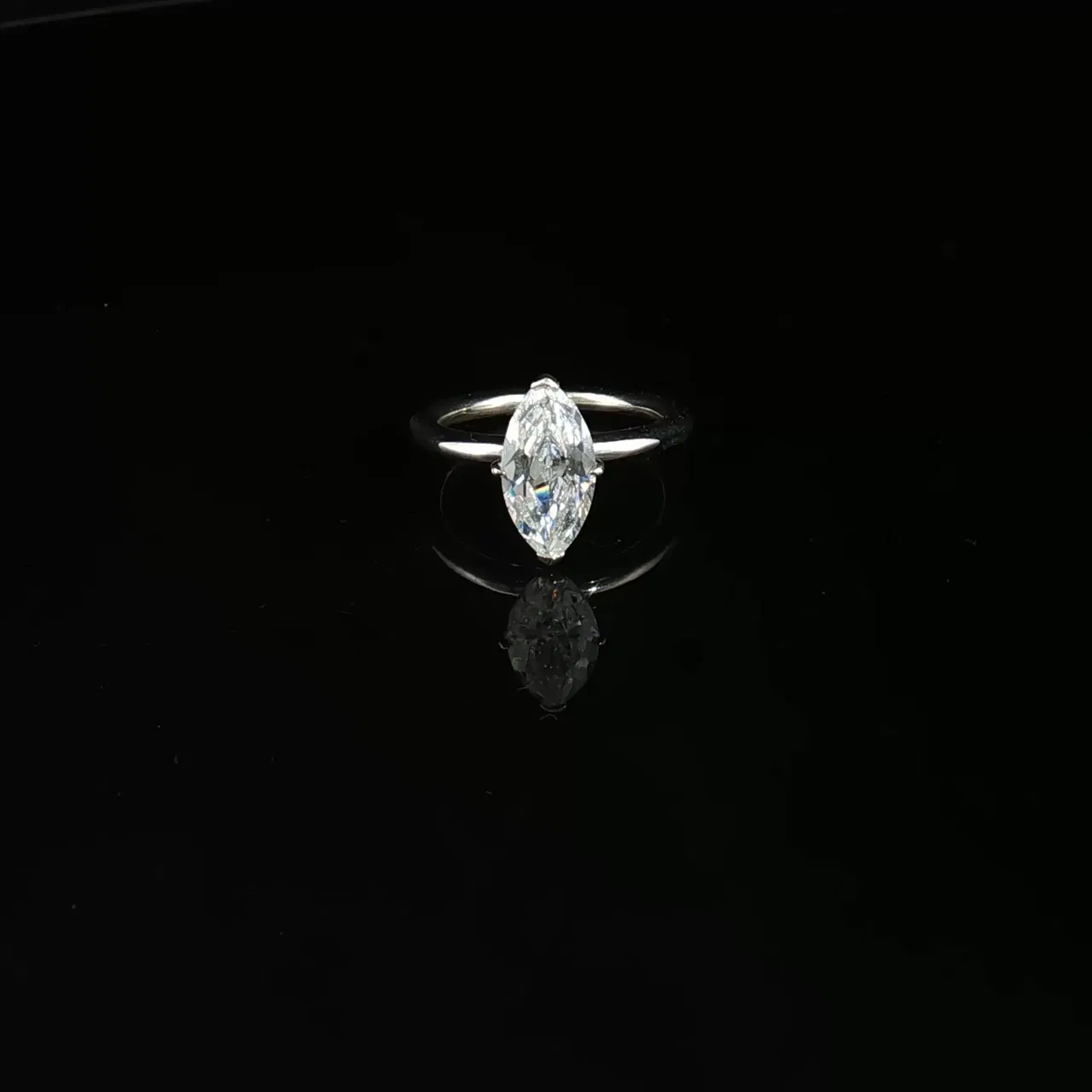 Upplev tidlös elegans med denna klassiska solitärring. Den utsökta marquiseslipade diamanten är infattad i glänsande vitguld. Briljantslipningen förstärker diamantens eld och scintillation. Ett tidlöst smycke för betydelsefulla tillfällen.