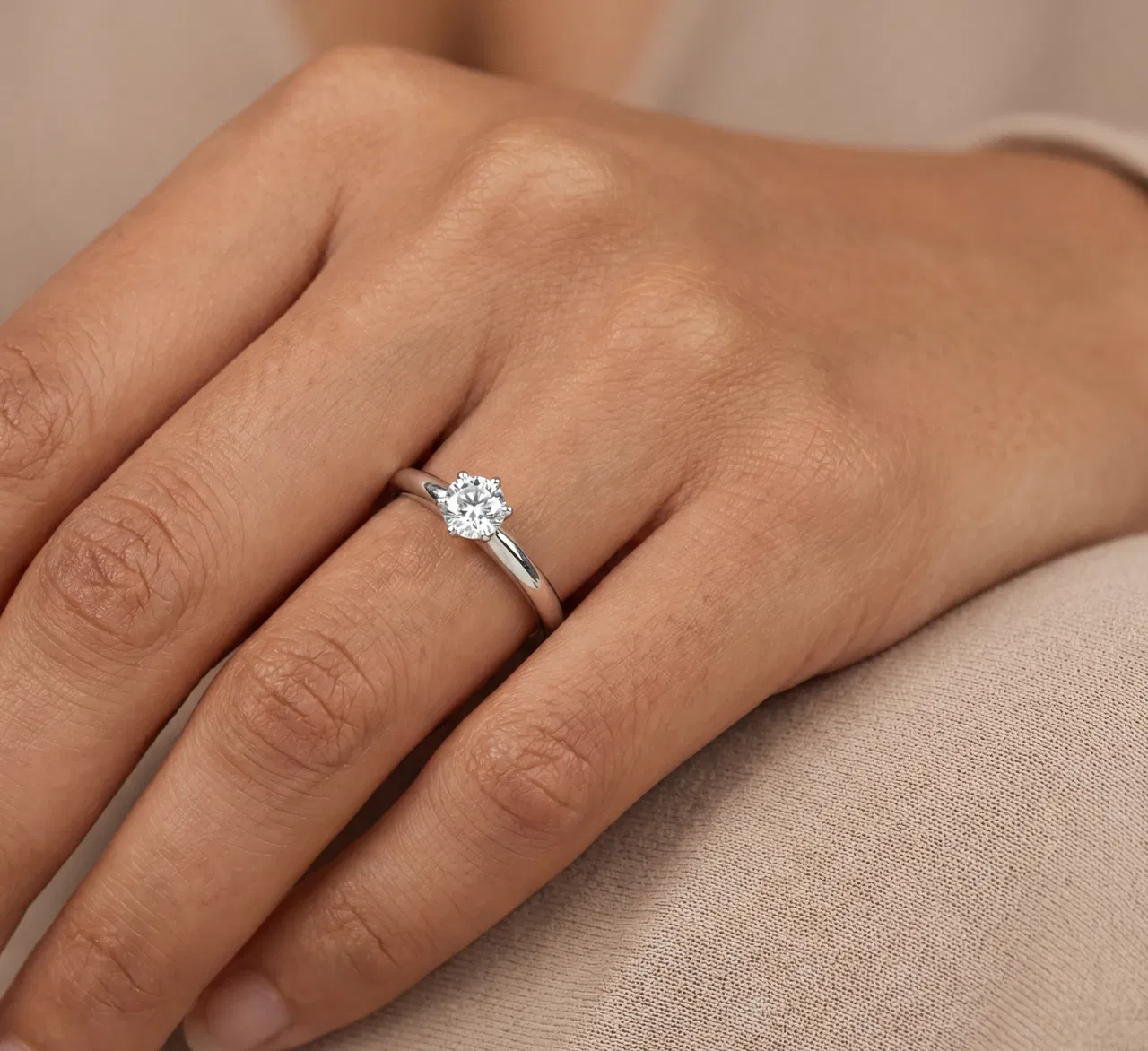 Denna eleganta solitärring har en rund briljantslipad diamant. Den enkla designen framhäver diamantens eld och lyster och skapar ett tidlöst smycke som passar för alla tillfällen. Infattningen är utformad för att maximera ljusinsläppet och förstärka diamantens gnister.
