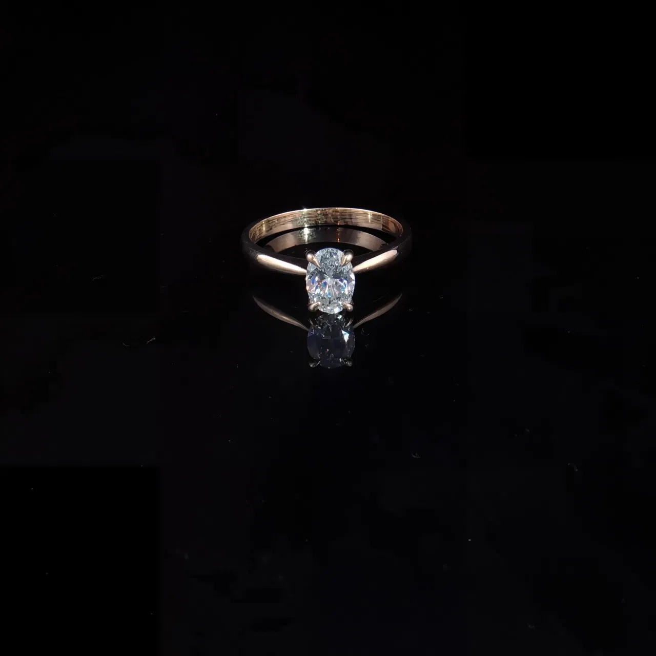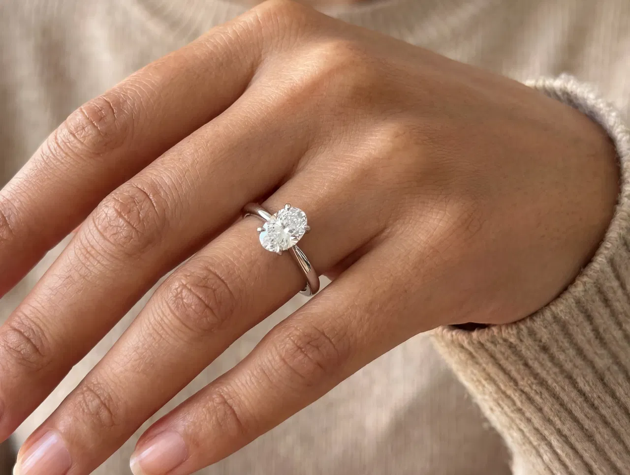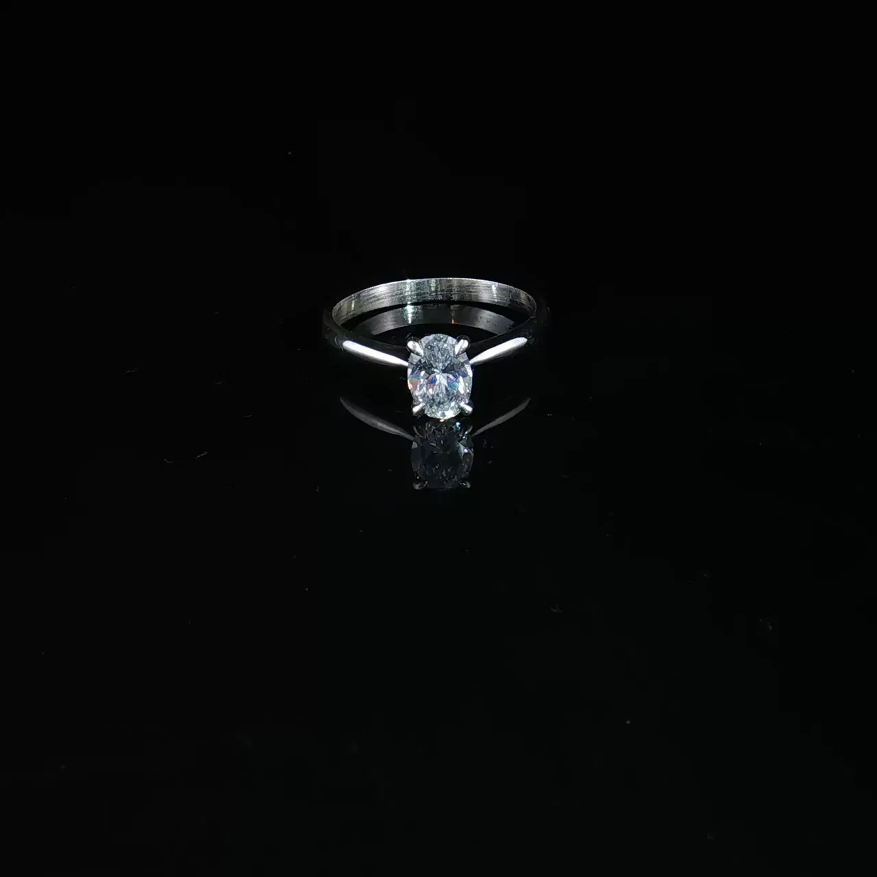 Utsökt tillverkad solitärring i silver med en gnistrande ovalslipad diamant som strålar av lyster och eld. Den tidlösa designen i vitguldston utstrålar sofistikation och diskret elegans – perfekt för att fira oförglömliga ögonblick och kärleksförklaringar.