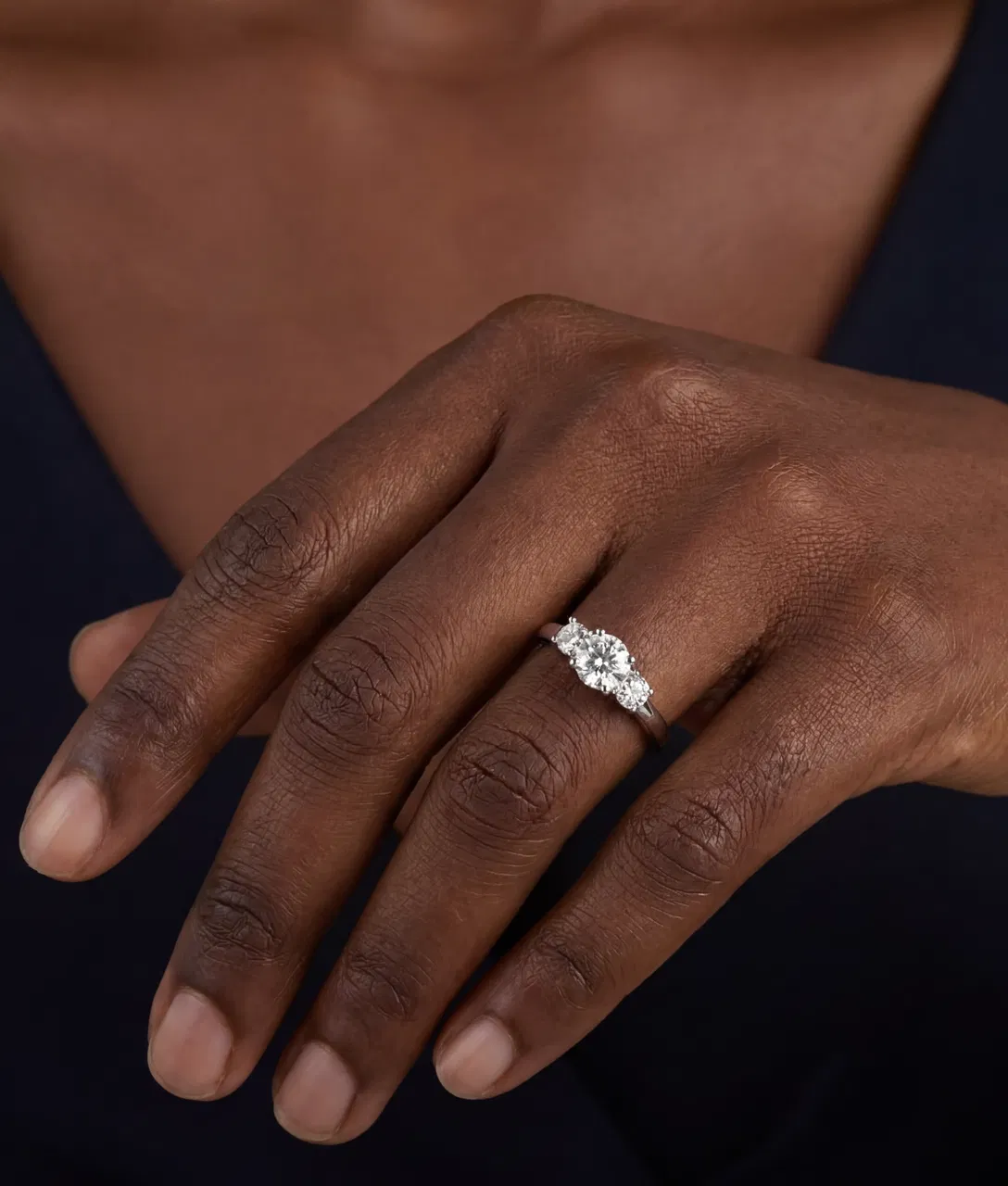 Lyft din stil med denna utsökta flerstensring. Ringen pryds av tre rundslipade briljantdianter, infattade för att fånga och reflektera ljuset vid varje rörelse. Designen utstrålar sofistikation och tidlös elegans, vilket gör den till ett perfekt smycke för alla tillfällen.